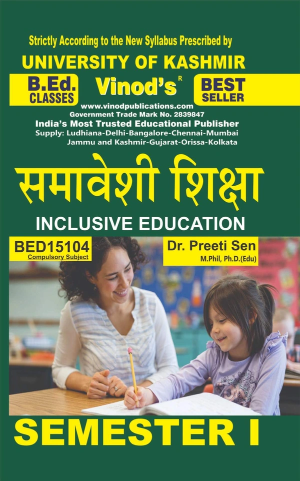 104 (H) Inclusive Education (Hindi Medium) SEM - I Book B.Ed. Textbook ; KASHMIR UNIVERSITY ; Vinod Publications ; CALL 9218219218