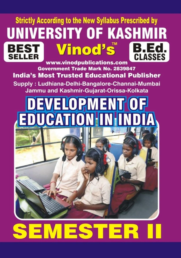 201 (E) Development of Education In India (English Medium) SEM - II Book B.Ed. Textbook ; KASHMIR UNIVERSITY ; Vinod Publications ; CALL 9218219218