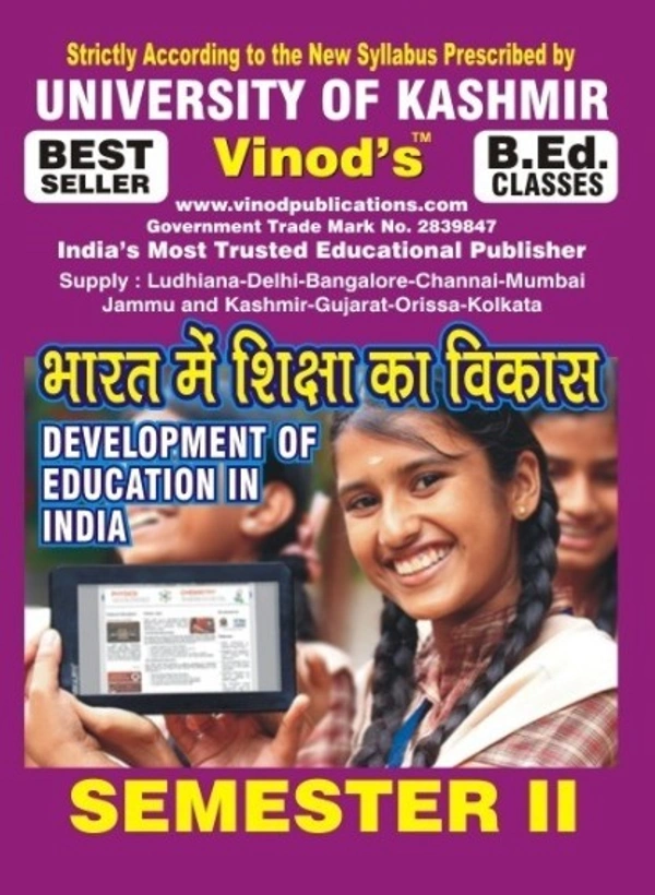 201 (H) Development of Education In India (Hindi Medium) SEM -II Book B.Ed. Textbook ; KASHMIR UNIVERSITY ; Vinod Publications ; CALL 9218219218
