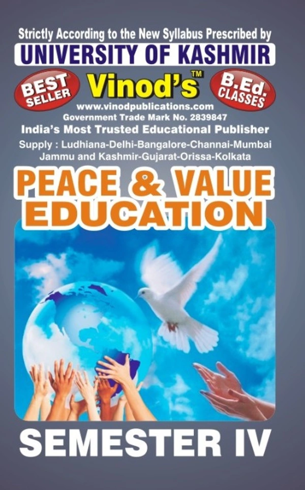 402 (E) Peace & Value Education (English Medium) SEM - IV B.Ed. Textbook ; KASHMIR UNIVERSITY ; Vinod Publications ; CALL 9218219218