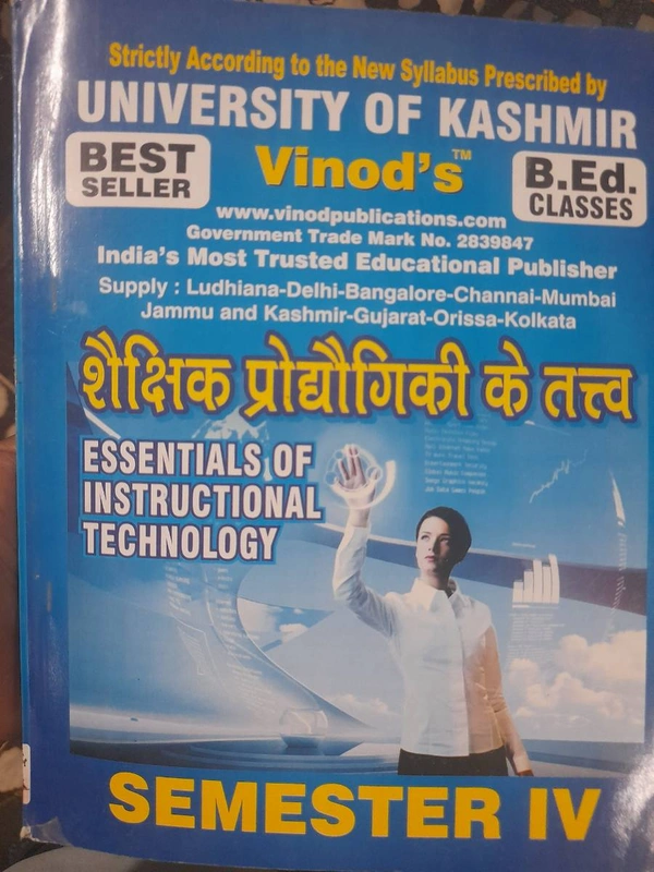403 (H) 3. Essentials of Instructional Technology (Hindi Medium) SEM-IV B.Ed. Textbook ; KASHMIR UNIVERSITY ; Vinod Publications ; CALL 9218219218