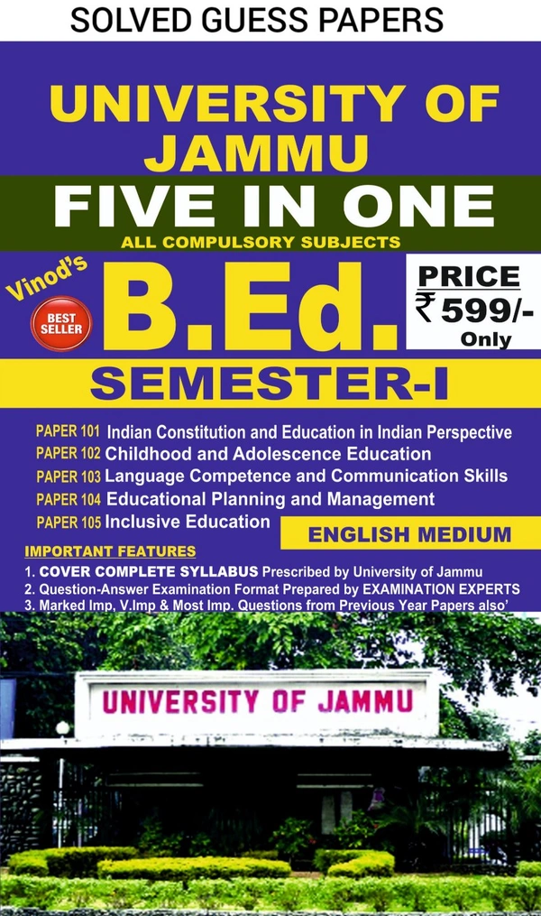 B.Ed. SEM-1 (E) Solved Guess Papers (FIVE IN ONE) - Jammu University (2023 NEW EDITION)