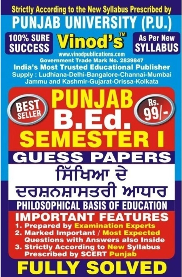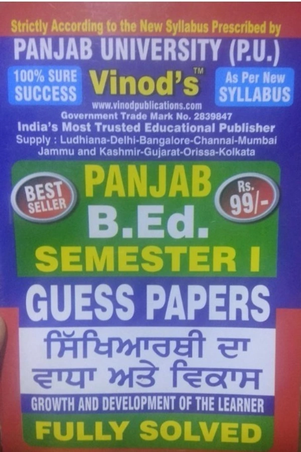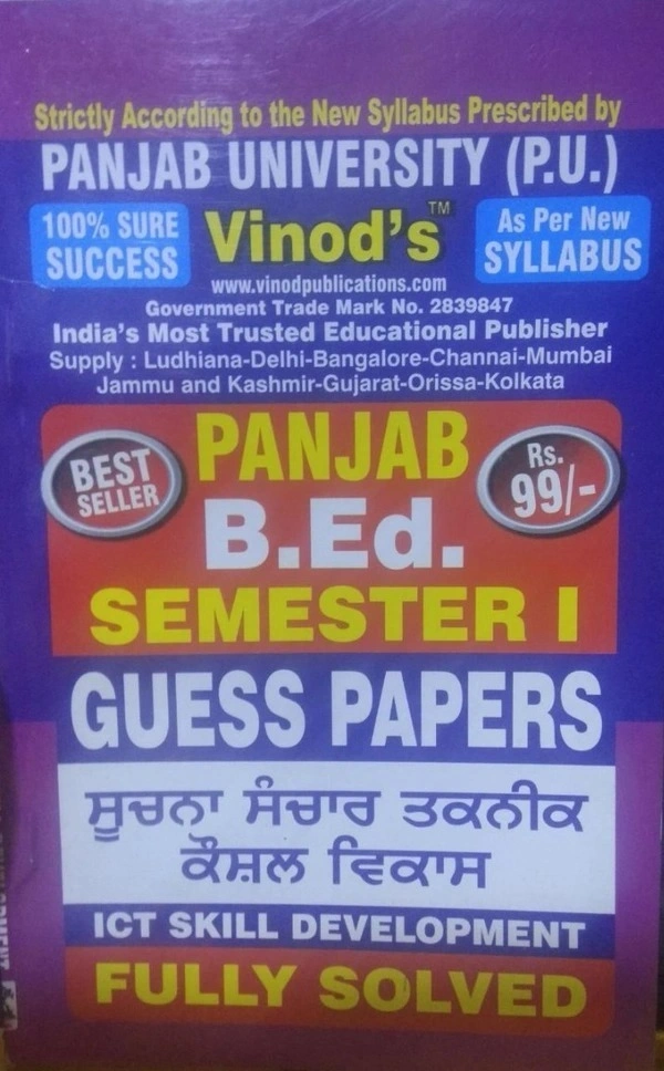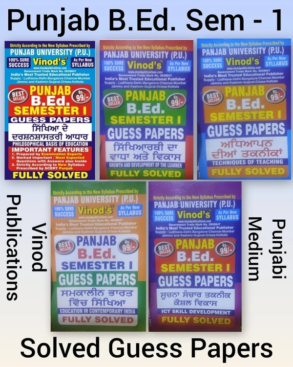 1.6 PUNJAB B.Ed. (P.U) 5 Solved GUESS PAPERS (Sem 1) Punjabi Medium - ALL COMPULSORY SUBJECTS (Panjab University, Chd) Include Imp. Ques with Answers from Previous Year Papers - 100% Success - VINOD PUBLICATIONS