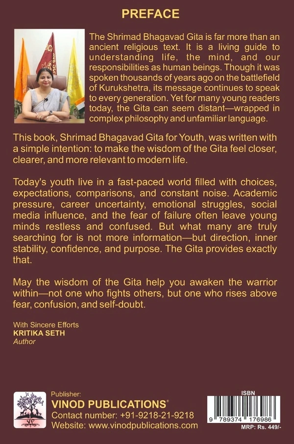 Bhagavad Gita for Youth by Kritika Seth brings this timeless wisdom into a simple, modern, and easy-to-understand format—specially designed for young minds.