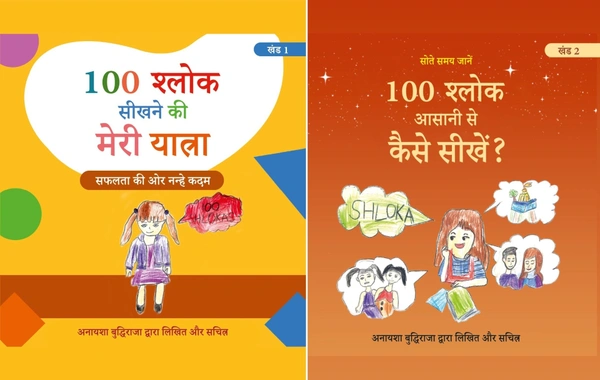 COMBO Hindi Medium (खंड 1 एवं 2) 100 श्लोक सीखने की मेरी यात्रा। 100 श्लोक आसानी से कैसे सीखें? लेखक एवं चित्रकार: अनायशा बुद्धिराजा; आयु: 6 साल (गिनीज़ वर्ल्ड रिकॉर्ड धारक); छात्रा - सेंट पॉल मित्तल स्कूल (प्रकाशक - विनोद पब्लिकेशन)