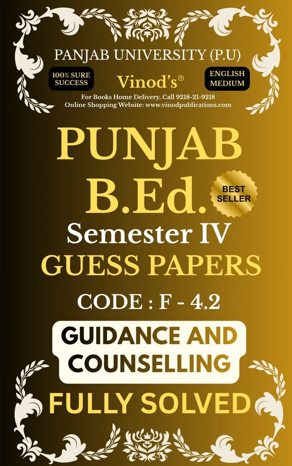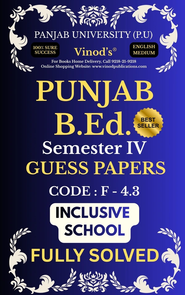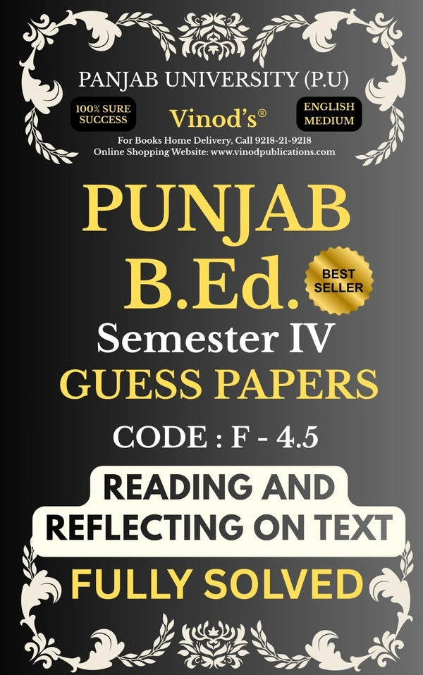 Prepare confidently for your Punjab B.Ed. Semester IV examinations with Vinod’s 100% Sure Success Guess Papers. Specially designed as per the latest Panjab University (P.U.) syllabus, these English Medium guess papers provide fully solved answers to help students score high with smart preparation.